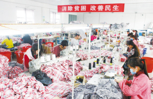 4月22日,丁集镇关庄村扶贫制衣厂内,工人们正在赶制订单。项城引导企业建立“扶贫车间”,实现了从“输血”扶贫到“造血”扶贫的转变。 李光辉 摄