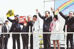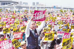 数万日本民众3日在东京举行集会,纪念“和平宪法”颁布70周年,抗议安倍政府的修宪企图。在野党、学者、律师、市民团体等日本社会各界代表在集会上发言,表达对安倍政权的不满和守护宪法的决心。新华社发