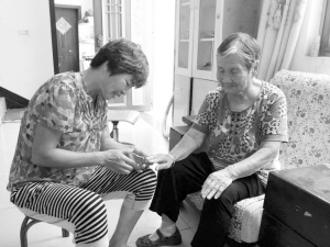母亲节来临之际,沈丘县发出“浓情五月天,感恩母亲节”倡议书,号召全县儿女积极行动起来,以实际行动回报母亲的养育之恩。图为该县槐店镇大王楼村农家妇女刘冬梅为90大寿的婆婆剪指甲。王向灵 摄