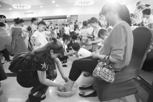 5月14日,项城市第二幼儿园组织学校教师和部分孩子开展“我给妈妈洗洗脚”活动。为了欢庆母亲节,项城市组织开展了公益慰问、“我给母亲洗洗脚”、表彰“优秀母亲”等系列主题活动,弘扬中华民族传统美德,培育良好的社会风气。 张永久 摄