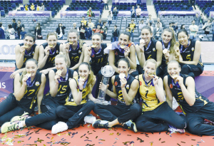 5月14日,土耳其瓦基弗银行队球员在赛后庆祝夺冠。当日,在日本神户市进行的女排世俱杯决赛中,土耳其瓦基弗银行队以30战胜巴西舒耐队夺得冠军,效力于瓦基弗银行队的中国球员朱婷被评为最有价值运动员。新华社发