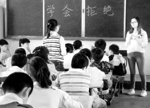 日前,为加强小学生心理健康教育,市新民小学与周口师范学院大学生心理健康协会合作开设情绪管理、学习品质、思维开发等课程,针对学生心理特点,解决其心理问题,取得了良好效果。 记者 沈湛 摄