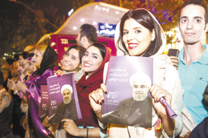 伊朗民众庆祝鲁哈尼总统选举胜出