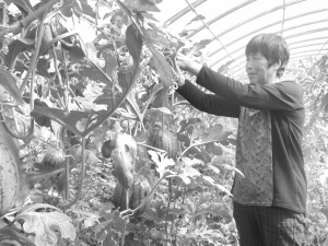 昨日,沈丘县周营乡周营村村民王燕敏在管理大棚吊蔓西瓜。近年来, 该县积极鼓励和引导农民因地制宜发展大棚西瓜、葡萄、朝天椒、高淀粉红薯等生态无公害特色农业。通过“合作社+科技人员+农户”的种植模式,实现了农业增效、农民增收的目的。 谢辛凌 摄
