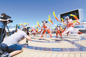“盛世公主”号上的精彩表演还不止于此。伴随航行,一系列含有中国元素的文化交流活动将按照“丝路·缘”“丝路·乐”“丝路·舞”“丝路·秀”“丝路·味”“丝路·画”和“丝路·歌”7个主题陆续呈现。