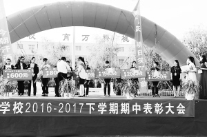 本报讯 (记者 陈军强 通讯员 李晶杰 文/图) 为进一步激发学生奋发向上、拼搏进取的精神,表彰先进,日前,周口新星学校隆重表彰了2016至2017下学期期中考试成绩优秀学生。此次发放奖金的数额从100元至2500元不等,共发放奖金20多万元。