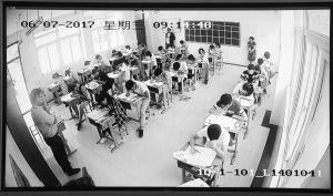 ③6月7日上午,通过监控,可以看到各考场秩序井然、考生安静答题。