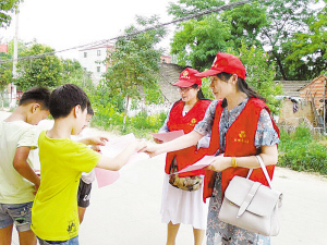 日前,沈丘县妇联组织的巾帼志愿者深入街头巷尾、社区、村庄、学校开展“珍惜生命预防溺水”宣传活动,并向家长和儿童发放了《防溺水安全知识》宣传单。据了解,目前,该县妇联已发放《预防未成年人溺水倡议书》《防溺水安全知识》宣传单等8000余份,组织学校举办防溺水安全知识讲座120场(次)。图为巾帼志愿者在周营乡马营村正向小学生发放宣传单。