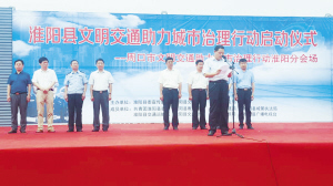 本报讯 (记者 侯俊豫文/图)6月13日上午,淮阳文明交通助力城市治理行动启动仪式在羲皇文化广场举行。县委常委、宣传部长谢留定、县公安局局长李凤丽及县文明办、县交通局等单位负责人出席启动仪式。来自交警大队、县直文明单位和出租车、公交司机代表等近500名人参加活动。