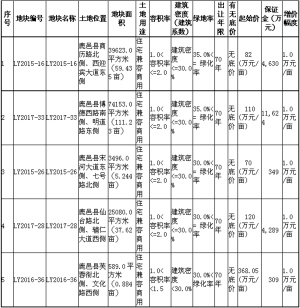 挂牌报价时间为:LY2015-16地块: 2017年6月23日9时00分00秒 至 2017年7月6日16时20分00秒;LY2017-33地块: 2017年6月23日9时00分00秒 至 2017年7月6日16时15分00秒;LY2015-26地块: 2017年6月23日9时00分00秒 至 2017年7月6日16时10分00秒;LY2017-28地块: 2017年6月23日9时00分00秒 至 2017年7月6日16时5分00秒;LY2016-36地块: 2017年6月23日09时00分00秒 至 2017年7月6日16时00分00秒。