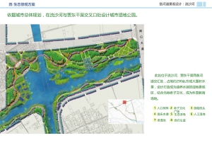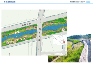 结合城市整体规划,河道的文化性、城市性、功能性、生态性及两侧用地性质进行分析,确定河道的景观格局。
