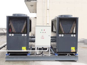 项目设计总热负荷为75.2KW,本次设计采用两台ZKYS-PRSCH-42型超低温空气源热泵作为热源承担办公室、会客室、会议室制冷供暖,夏季提供7/12℃冷冻水供冷,冬季提供45/40℃热水供热。