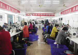 大雄鹰服饰公司设在莲池乡后胡行政村的扶贫车间里工人们正赶制服装。
