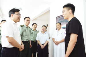 市委书记刘继标在沈丘县退役士兵服务中心调研。