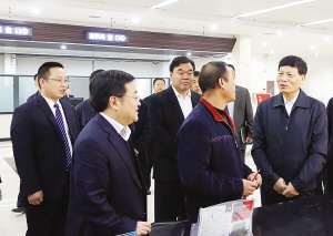 县委书记皇甫立新、县长刘国庆等领导在老城镇调研扶贫车间开展情况。