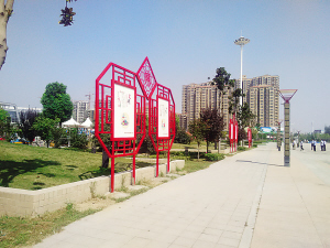 极具特色的公益广告宣传栏与干净整洁的火车站广场相得益彰