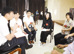 人大代表热议政府工作报告。记者 沈湛 摄