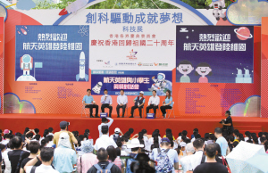 当日,在香港维多利亚公园举行的“创科驱动 成就梦想”科技展上,航天员杨利伟、景海鹏、陈冬与香港小学生互动,回答关于航天科技的各种问题。