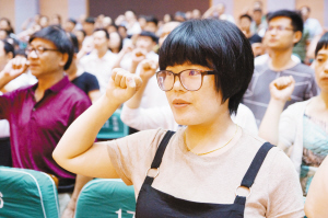 项城市直机关工委举行建党96周年暨新党员入党宣誓、老党员重温入党誓词仪式。蒋树保 摄