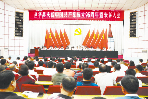 本报讯 (记者 张猛)6月30日上午,西华县庆祝中国共产党成立96周年暨表彰大会在县委礼堂召开。县领导林鸿嘉、程维峥、周晓燕、郭峰、高潮、胡军华、陈秉生、李涛、王献超、张晓伟、杨凤臣、王卫东,以及其他在家的县处级领导干部出席会议。各乡镇办党政正职,县直机关各单位主要负责同志,县委各部委办分管副职,受表彰的先进基层党组织和先进个人代表等参加会议。县委副书记、政法委书记程维峥主持会议。