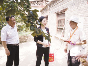 七一前夕,聂堆镇镇长牛海燕带领班子成员,深入该镇37名、60年以上党龄的老党员家中走访慰问,详细了解他们生活和身体状况,征求他们对脱贫攻坚、美丽乡村建设等工作的意见和建议。图为牛海燕一行在埠口行政村老党员张海顺家中走访慰问,并为他送去慰问品和纪念章。鲁中行 摄