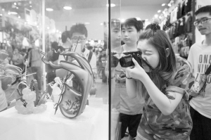 7月6日,在第十三届中国国际动漫游戏博览会现场,观众拍摄展出的动漫人物模型。当日,为期5天的第十三届中国国际动漫游戏博览会在上海世博展览馆开幕。新华社发