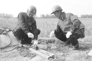 为满足群众抗旱用电需求,6月30日,太康县供电公司组织党员服务队深入到田间地头装接临时电源助农抗旱,受到欢迎。 邱志强 摄