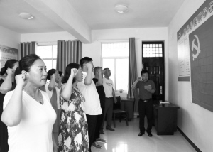 日前,鹿邑县残联相继开展了学党章、唱国歌、重温入党誓词、“两学一做”学习教育演讲等系列活动,鼓励全体党员积极发挥先锋模范作用,在工作中比奉献、比干劲、比热情。图为县残联全体党员重温入党誓词。