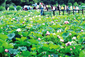 泗洪,一个用水韵诠释美的地方,一个用色彩创造美的地方,夏日的泗洪绚丽多彩。在泗洪洪泽湖湿地公园千荷园内1008种荷花正绚丽绽放,争奇斗艳,美不胜收。成片翠绿色的荷叶中一枝枝粉红色、白色的荷花亭亭玉立,阵阵荷香扑面而来,沁人心脾。穿梭于荷花园中,与荷花来个亲密接触,或赏花或拍摄,让人流连忘返。