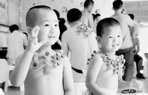 “冬病夏治”迎头伏 7月12日,两名儿童在北京市怀柔区康益德医院接受针对哮喘类疾病的拔罐治疗。当日是夏季入伏第一天,各地市民来到医院或诊所接受传统“冬病夏治”疗法,通过针灸、贴敷、拔罐等方式防病治病。 新华社发