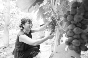 昨日,商水县舒庄乡扶苏村果农在采摘葡萄,丰收的喜悦写在脸上。在脱贫攻坚活动中,该县采取“基地+合作社+贫困户”模式,引导农民集中连片发展高产高效经济作物种植,鼓起了农民的钱袋子。 刘飞 魏红 摄