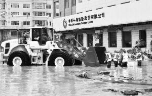 强降雨致吉林永吉县城内涝 7月14日,抢险人员在进行排涝作业。7月13日至14日,吉林省中部地区特别是吉林市普降大暴雨,局部出现特大暴雨。降雨导致永吉县城进水,目前永吉县正积极组织排涝、抗洪工作,暂未收到人员伤亡报告。新华社发