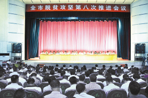 本报讯 (记者 刘彦章) 7月15日上午,全市脱贫攻坚第八次推进会议在人民会堂召开。市委书记、市人大常委会主任刘继标,就如何贯彻落实全省脱贫攻坚第四次推进会议、全省金融扶贫工作卢氏现场会精神和做好迎接国家脱贫攻坚督查巡查工作进行重点安排部署。市长丁福浩回顾总结全市上半年脱贫攻坚工作,客观分析存在问题,安排部署下半年脱贫攻坚工作任务。