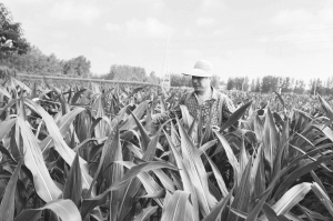 昨日,商水县袁老乡马庄村村民在给玉米喷施农药。时下正是玉米生长的关键时期,该县积极组织当地群众开展田间管理,喷打农药防治玉米青虫、红蜘蛛等病虫害,并适量喷洒有机叶面肥,确保秋作物丰产丰收。刘飞 魏红 摄