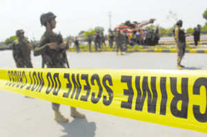 7月17日,在巴基斯坦白沙瓦,安全部队封锁爆炸现场。