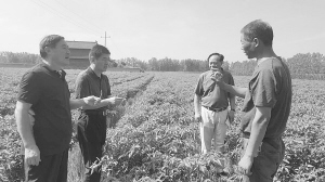 7月21日,豫东商会常务副会长、郑州八方实业有限公司董事长王西志,河南农业大学教授宋加友一行到太康县五里口乡王寺安行政村万亩农田基地,就脱贫攻坚和土地确权背景下通过土地流转、种植结构调整实现规模化经营,建设生态、功能、高效、观光为一体的现代农业新路子、新模式进行专题宣讲和座谈。王丽娜 摄
