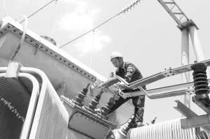 连日来,我市最高气温基本都在36℃以上,许多劳动者依然默默地坚守在工作岗位上,用自己的辛勤劳动接受高温“烤”验。图为昨日项城市邝庄变电站电力工人正在不畏酷暑、挥汗如雨地维修线路,确保市民能在“桑拿”天里安心用电。