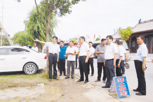 7月19日,县委书记马明超、县长王毅一行深入县产业集聚区、东湖景区、新老城区调研“两城一区”创建工作,对存在的问题提出具体意见,要求责任单位按照创建标准限期整改提高。(闫俊岭 摄)