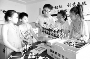 多彩生活 乐享暑假 7月27日,南和县青少年活动中心工作人员指导孩子们进行手工创意搭建。暑期期间,河北省南和县青少年活动中心举办“多彩生活 乐享暑假”暑期系列公益活动,开设舞蹈、航模、茶艺、绘画、书法等十多个兴趣特色培训班,丰富少年儿童暑期生活。新华社记者 朱旭东 摄