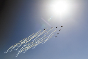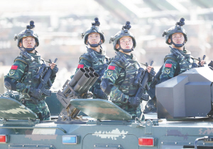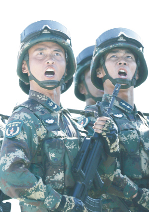 此外,这次受阅队形也做出了相应调整。护旗方队呈楔形,突出了党旗、国旗、军旗三面旗帜。特种兵方队30辆全地形车组成箭簇形,体现了特种兵箭在弦上,时刻准备战斗的决心。敬礼角度也由原来的15度抬高到30度。“摆头角度的改变体现了我军在习主席改革强军目标引领下的自信和自豪。”李明说。