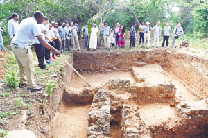 肯尼亚发现郑和下西洋时代中国血缘人骨遗骸 7月29日,美国考古学者查普·库辛巴(左一)在曼达岛考古遗址现场给参会人员介绍情况。在肯尼亚拉穆郡曼达岛28日开幕的首届“古今中国与东非联系国际论坛”上,由中国、美国和肯尼亚专家组成的联合考古队宣布在曼达岛发现了具有中国血缘的3具人骨遗骸,其中一人可能生活在郑和下西洋的时代。 新华社发