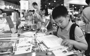 8月10日,一位小朋友在南国书香节展馆里看书。当日,2017南国书香节暨羊城书展在广州市琶洲会展中心开幕。据介绍,本届书香节的参展面积达4万平方米,期间将举办240多场与读书相关的活动,活动将持续至本月14日结束。 新华社发
