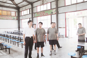 图为马明超到新兵训练基地察看生活保障情况。(闫俊岭 文/图)