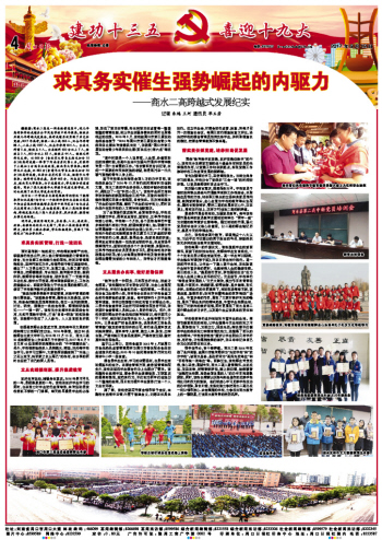 为什么一个学校在生源范围狭窄的情况下能够取得如此成绩?为什么一个软硬件条件与省级示范高中相去甚远的学校能够在高考中连年有名?当记者真正走进商水二高时,真切感受到:商水二高的强势崛起、跨越发展正是二高人求真务实、夙兴夜寐、激情创业催生的结果。