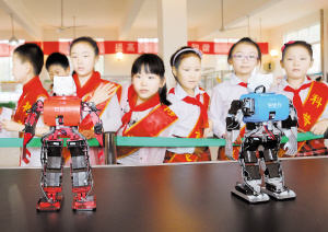 9月20日,在扶沟县青少年科技馆内,机器人表演吸引了小学生的眼球。当日,中国流动科技馆第二轮巡展在扶沟站展出,共展出16套展品。