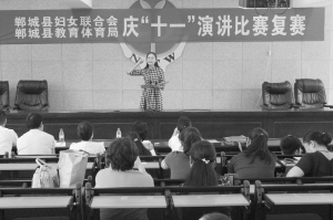 近日,郸城县妇联、教体局联合举办庆“十一”演讲比赛。各乡镇、县直学校推荐的85名师生参加了此次比赛,按照学生组和教师组依次进行,最终评出一、二、三等奖。安稳 摄