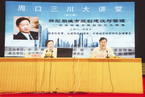 本报讯 (记者 刘彦章 )9月29日上午,由中共周口市委组织部、市委宣传部主办的第五期周口三川大讲堂在周口人民会堂举办。国务院参事、住建部原副部长、中国城市科学研究会理事长仇保兴应邀为我市广大党员干部作了题为《转型期城市规划建设与管理》的专题报告。市委书记、市人大常委会主任刘继标主持报告会。市领导牛越丽、穆仁先、方婷、王田业及部分副厅级以上领导干部共同聆听报告。