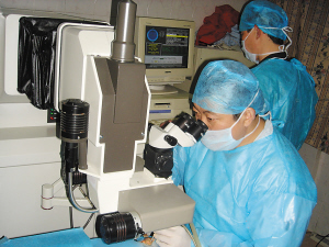 在为数不多能开展玻璃体手术治疗的医院中,周口市眼科医院是技术力量较雄厚的一家。显微玻璃体切除手术及眼内激光治疗,玻璃体视网膜手术,以最新医疗手段治疗各种眼后节疾病,特别是糖尿病、高血压引起的眼底出血、玻璃体积血、眼内炎、眼内异物、增生性玻璃体视网膜病变、复杂性视网膜脱离等,使众多濒临失明的患者视力得以恢复提高……