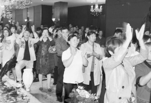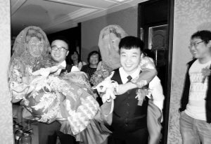 由于哥俩的婚礼赶上了国庆节,当天婚礼进行到高潮时,司仪提议全场起立,共唱《歌唱祖国》。