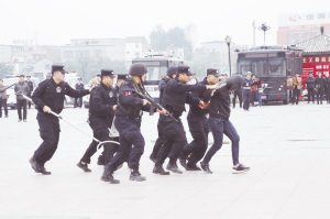 演练现场,全县反恐应急专业力量紧密配合,依次进行了反恐防暴实战演练,公安交警代表进行了交警手势操科目演练,特警和武警代表进行了处置群体性事件科目演练,公安、卫生、环保等部门联合进行了反恐防暴战术演练,消防官兵进行了消防技能科目演练。